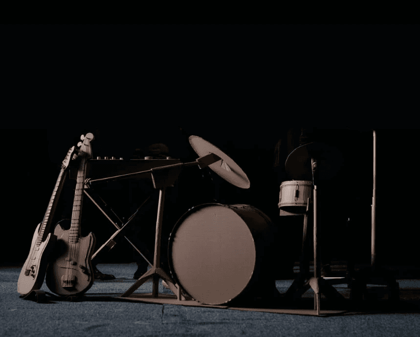 Collaboration avec le groupe @okpanda.band pour la réalisation d'instruments en carton sculptés pour leur clip musical. Guitares, basse, batterie : chaque instrument prend vie dans le carton avec des détails qui imitent les veinures du bois.